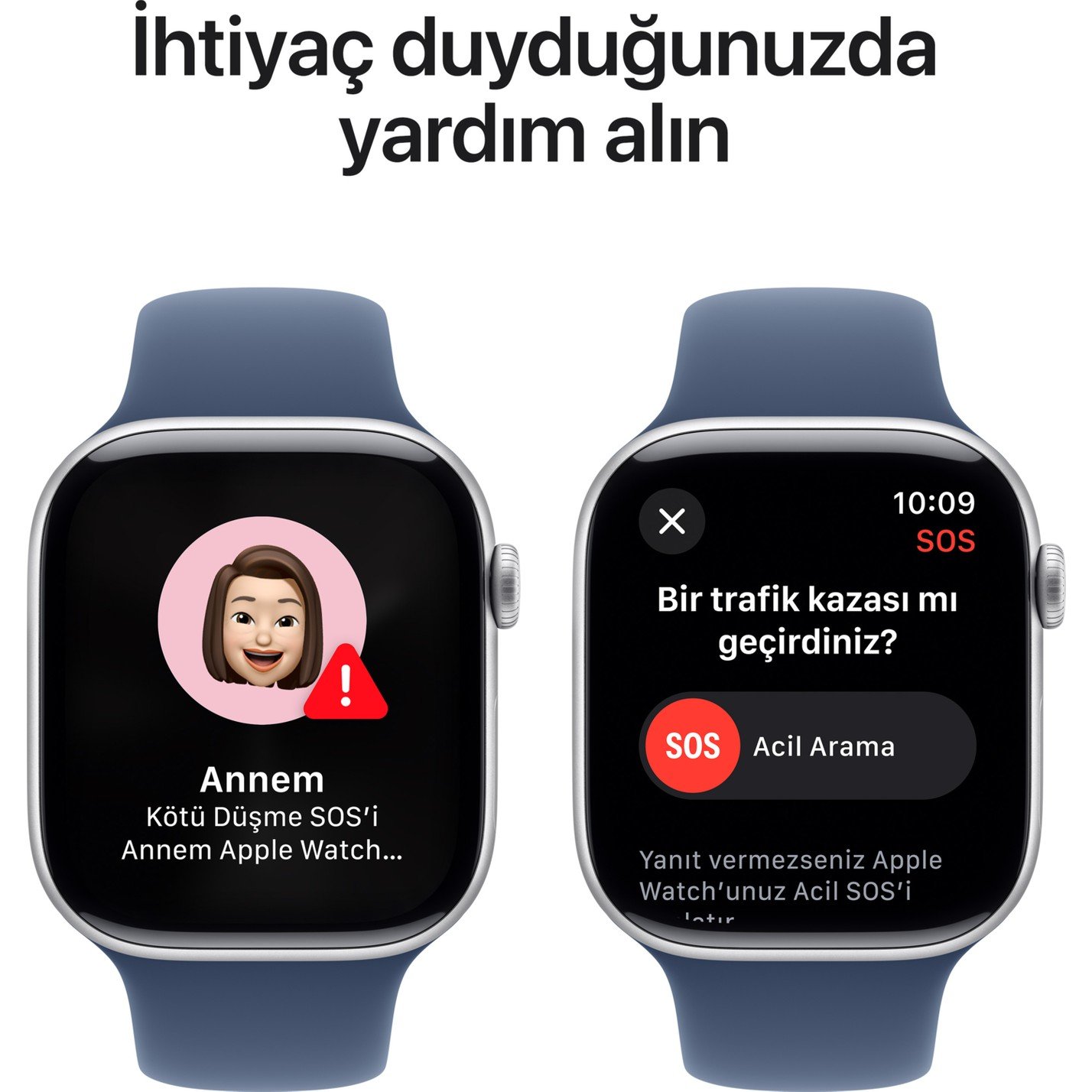 Apple Watch Series 10 GPS, 46 mm Gümüş Rengi Alüminyum Kasa ve Kot Rengi Spor Kordon – M/L için 5 değerlendirme