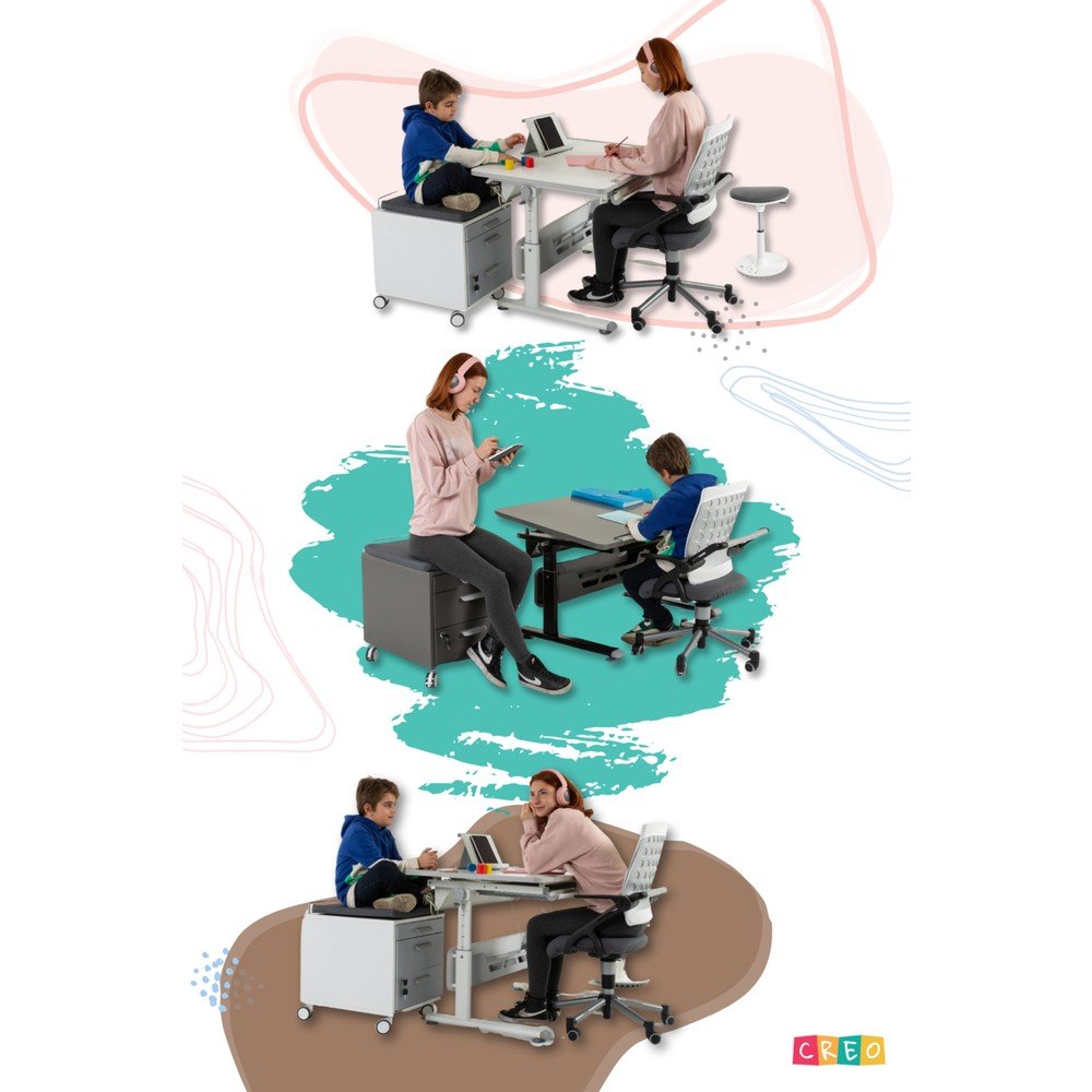 Creo Mobili’nin Vega modeli; estetik ve ergonomik tasarımıyla hem çocukların hem de yetişkin kullanıcıların ihtiyaçlarına cevap veren bir çalışma masası sistemidir. Ayarlanabilir özellikleri ve fonksiyonel detayları sayesinde eğitimden ev ofis ortamlarına kadar geniş bir kullanım alanına sahiptir.