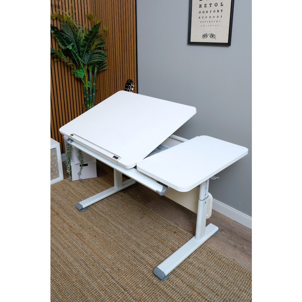 - Eğimli Masa Üst Tablası: Geniş yüzeyli masa tablası 9 kademeli eğim sistemine sahiptir. Çizim, yazı yazma, okuma gibi aktiviteler için farklı açılarda kullanılabilir.