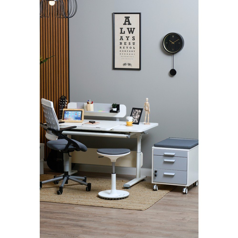 Creo Mobili Kompakt Çalışma Masası, Yükseklik Ayarlı Montessori Uyumlu – 130×70 Cm, Beyaz/Gri – Vega Simple