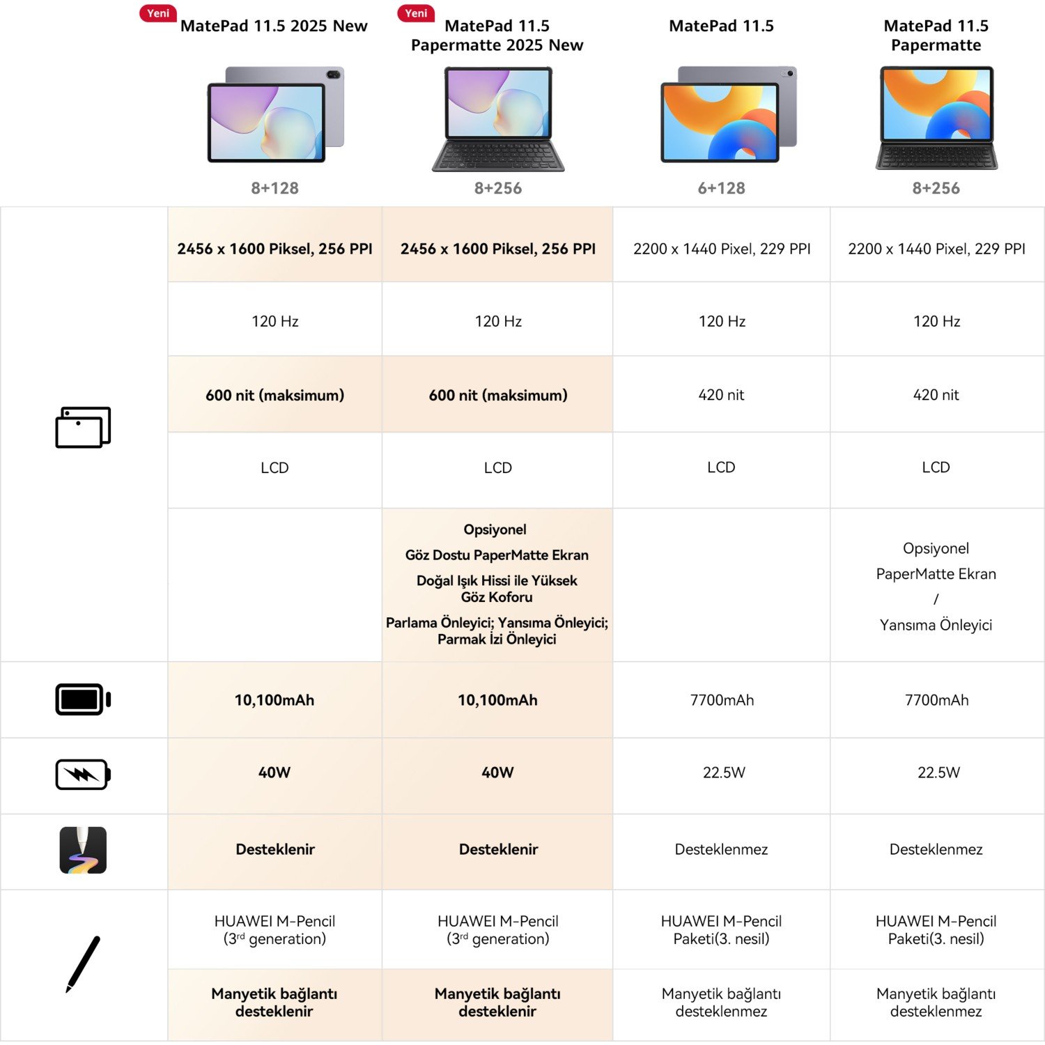 Huawei Yeni (2025) MatePad 11.5″ PaperMatte 8GB 256GB Tablet için 1 değerlendirme