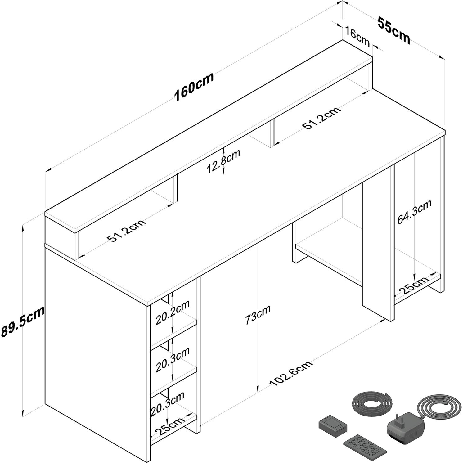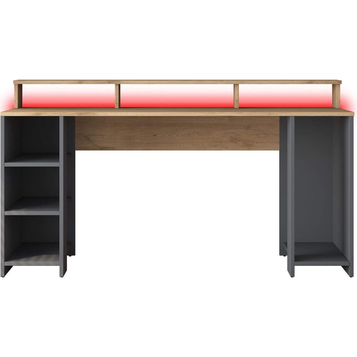 Rani HA122 LED Işıklı Kumandalı Rgb Raflı Oyuncu Bilgisayar Masası Çalışma Masası Sepet Ceviz – Antrasit